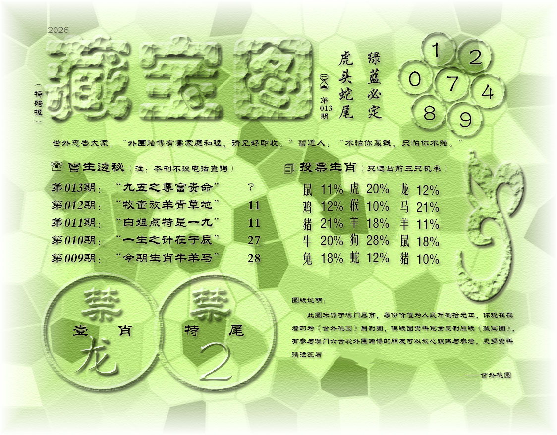 006期:绝杀半波【绿单绿单】开:13蛇准